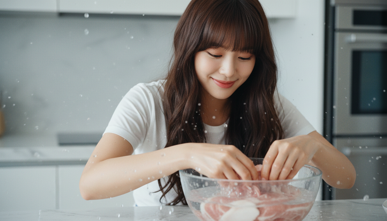 신선한 안심을 구입하셨다면, 조리 전 반드시 찬물에 30분에서 1시간 정도 담가 핏물을 빼주는 과정이 필수적입니다. 이 과정을 거쳐야 특유의 누린내를 확실하게 잡을 수 있습니다.
