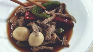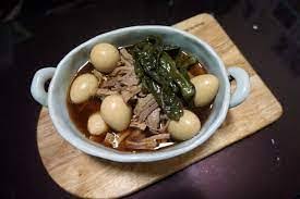 간장 국물이 바글바글 끓기 시작하면 찢어둔 고기와 메추리알을 모두 넣습니다. 불을 중약불로 줄이고, 국물이 반 이하로 자작하게 줄어들 때까지 뚜껑을 반쯤 연 상태로 은근하게 졸여주세요. 양념이 고기 속까지 배어들어 먹음직스러운 갈색빛을 띠게 됩니다.