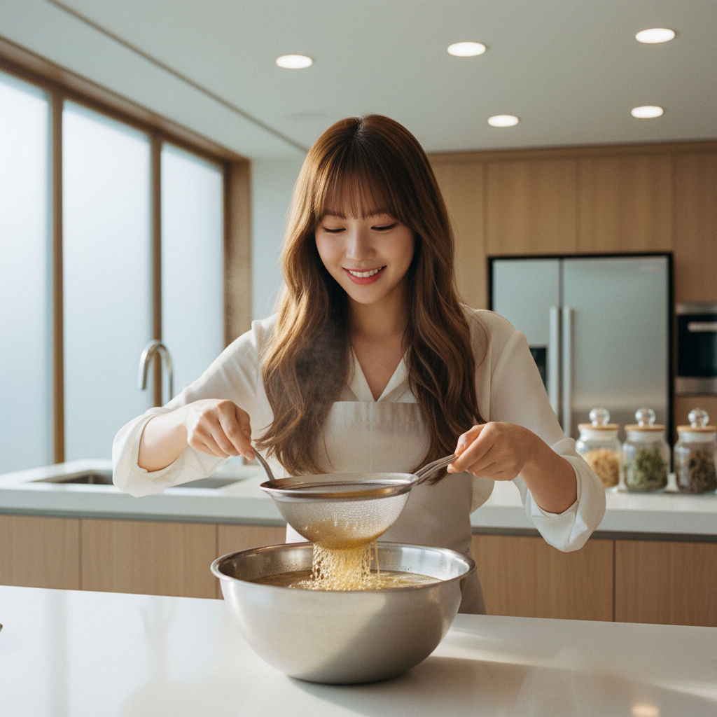 여기서 꿀팁! 고기를 삶아낸 뽀얀 채수는 버리지 마세요. 고운 체에 걸러 맑은 육수만 따로 모아두었다가 조림장 베이스로 사용하면, 감칠맛이 폭발하는 안심 장조림이 완성됩니다.