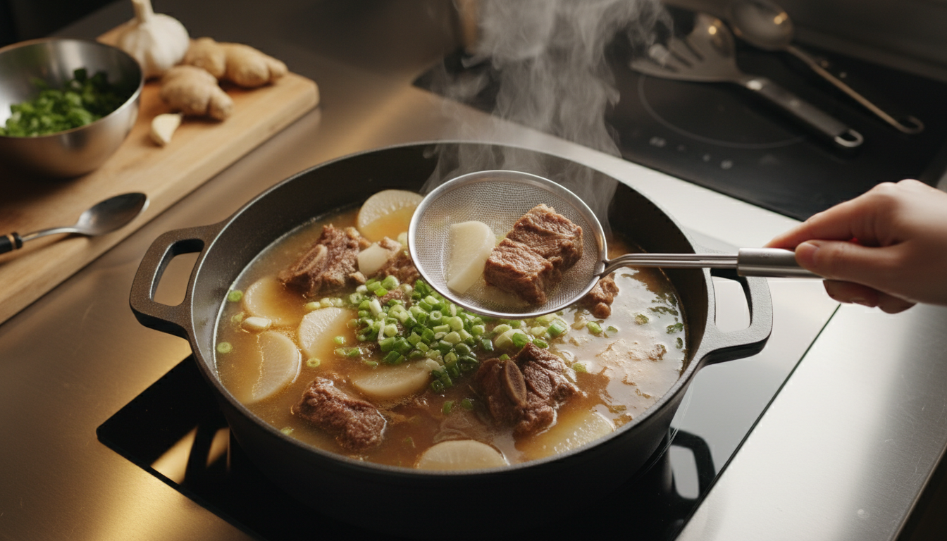 속이 다 보일 만큼 투명한 소고기무국 맛있게 하는법을 원하신다면 꼼꼼한 거품 걷어내기와 맑은 소금(천일염)으로 최종 간 맞추기를 꼭 기억해 주세요.