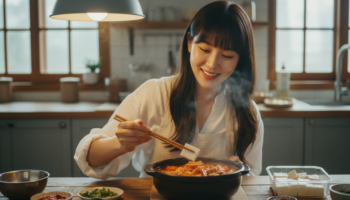 두부는 너무 일찍 넣으면 부서지므로, 마지막 5분 전에 넣는 것이 좋습니다. 썰어둔 두부를 넣고 한소끔 끓인 뒤, 대파를 넣고 불을 끄면 됩니다. 간은 소금이나 국간장으로 마지막에 한 번만 조절하세요. 설탕 한 꼬집을 넣으면 신맛을 잡으면서 감칠맛이 살아납니다. ✅