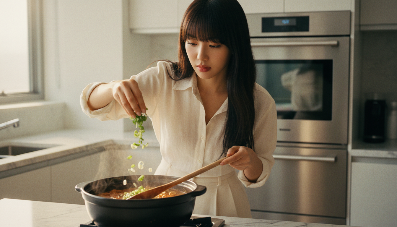 간을 맞춘 후 어슷하게 썬 대파를 넣고 1~2분만 더 끓이다가 불을 끕니다. 대파를 너무 오래 끓이면 풋내가 나고 식감도 물러지니 마지막에 넣는 것이 포인트입니다. 완성된 국을 그릇에 담고 참기름 한두 방울을 살짝 뿌려주면 고소함이 더해져 훨씬 맛있어집니다.