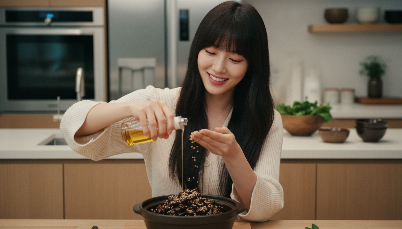불을 끄기 직전에 참기름 한 바퀴 두르고, 통깨를 솔솔 뿌려주면 완성이에요. ✅ 이때 콩자반 맛있게 만드는법의 결정적 포인트! 불을 끄고 나서도 5분 정도 뚜껑을 덮어 뜸을 들이면 윤기가 더욱 살아납니다.
