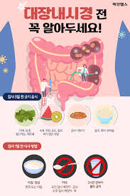 검사 2일 전 플레인 식빵, 껍질 깐 감자, 바나나, 소면, 소량의 닭가슴살 고춧가루 들어간 음식 전면 금지, 붉은/보라색 색소 음료