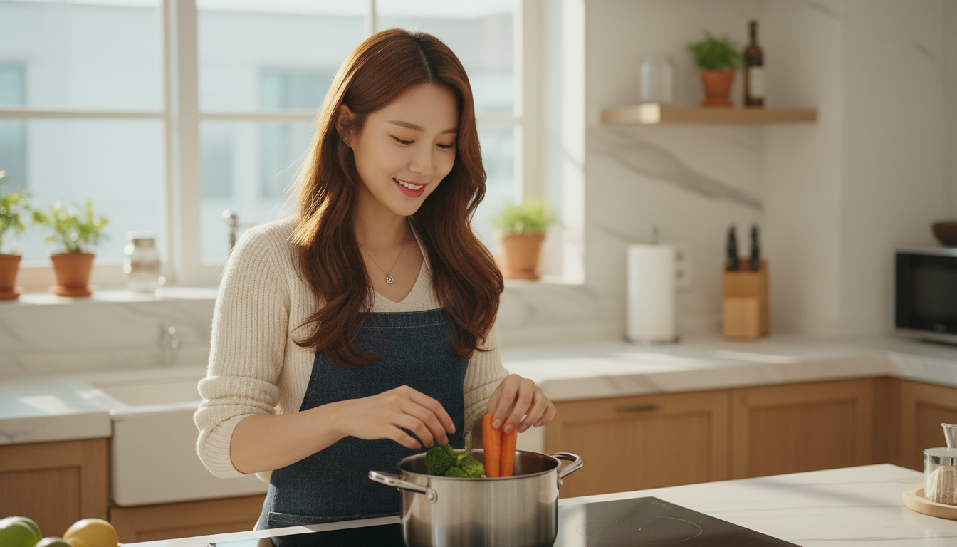 이제 본격적으로 가스레인지에 불을 켤 차례입니다. 찌개 요리는 재료를 냄비에 넣는 순서만 잘 지켜도 절반은 성공입니다. 채소마다 익는 속도와 맛이 우러나는 타이밍이 다르기 때문인데요, 이 순서를 정확히 지키는 것이 실패 없는 된장찌개 맛있게 끓이는 방법의 기본 뼈대랍니다.