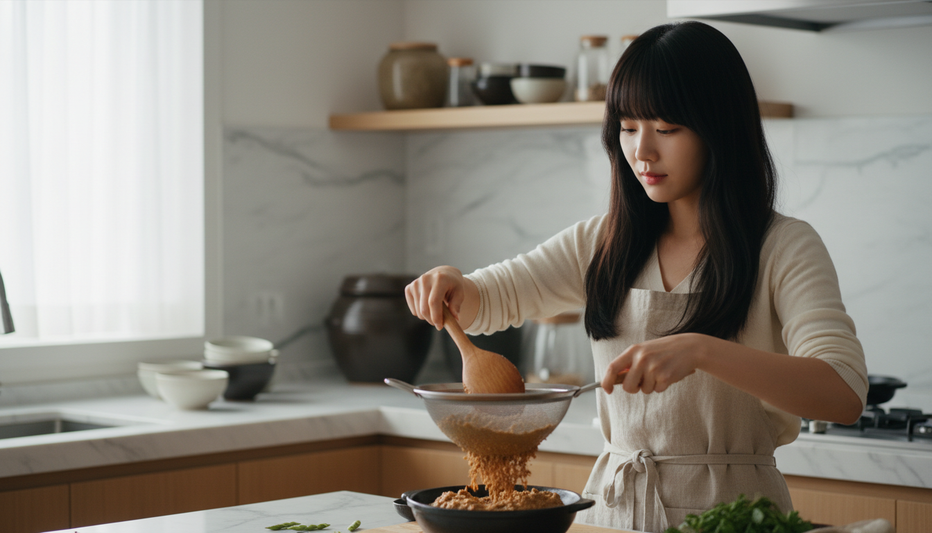 첫째, 맹물이 아닌 쌀뜨물이나 진한 멸치 육수를 사용하는 것입니다. 쌀을 씻을 때 나오는 두 번째, 세 번째 쌀뜨물의 녹말 성분은 국물을 부드럽고 걸쭉하게 만들어주며, 짠맛을 중화하고 장 특유의 떫은맛을 부드럽게 감싸주는 역할을 합니다.