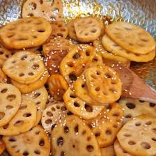 데칠 때도 물에 식초를 조금 넣으면 하얗고 맑은 색을 유지할 수 있습니다. 이미 만든 연근조림의 경우 간장으로 조렸기 때문에 짙은 갈색을 띠는 것은 정상입니다.