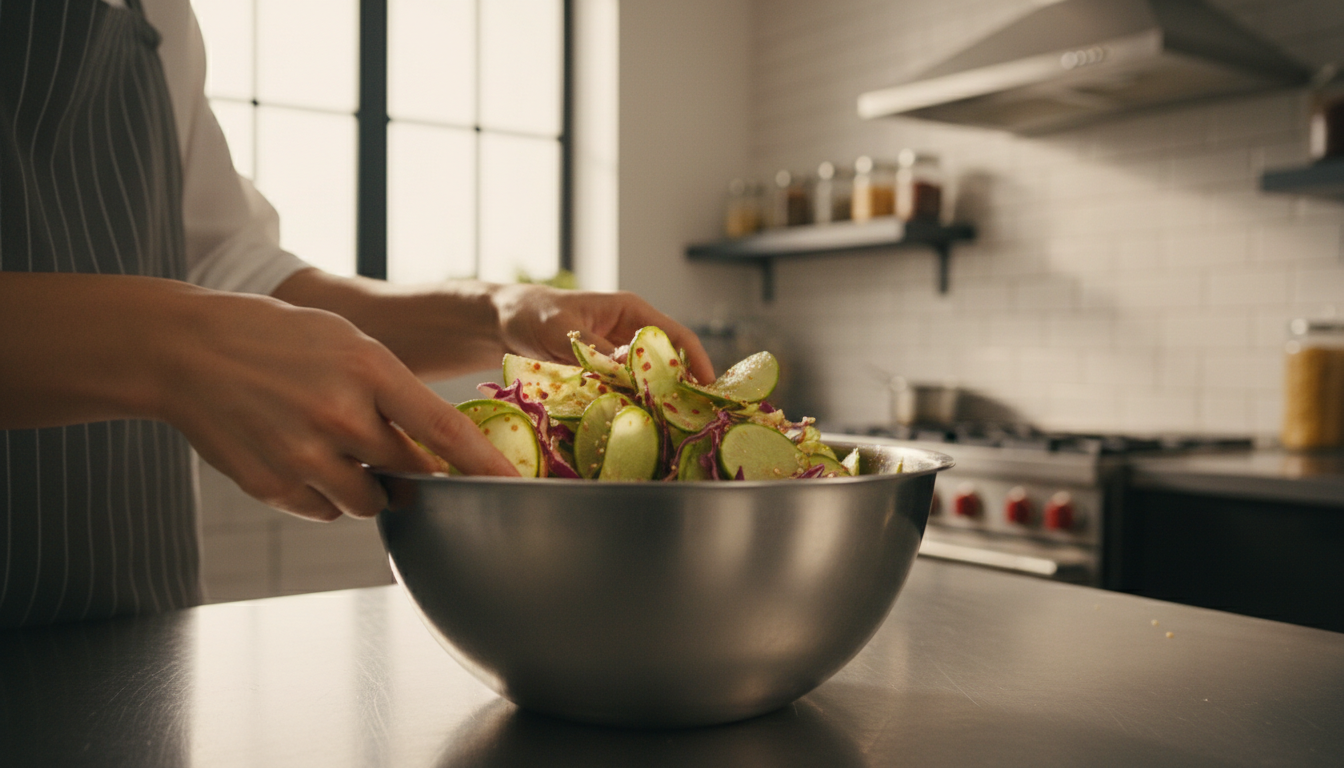 냉장 보관 전이라면 물을 추가하고 설탕이나 매실청을 조금 더 넣어 균형을 맞추면 됩니다. 이미 숙성이 진행됐다면 간을 맞추지 않은 물을 추가한 뒤 하루 정도 더 두어 간이 희석되도록 합니다. 나박김치 맛있게 담그는법에서 초반 간 조절이 얼마나 중요한지 다시 한번 느끼게 되는 상황이죠.