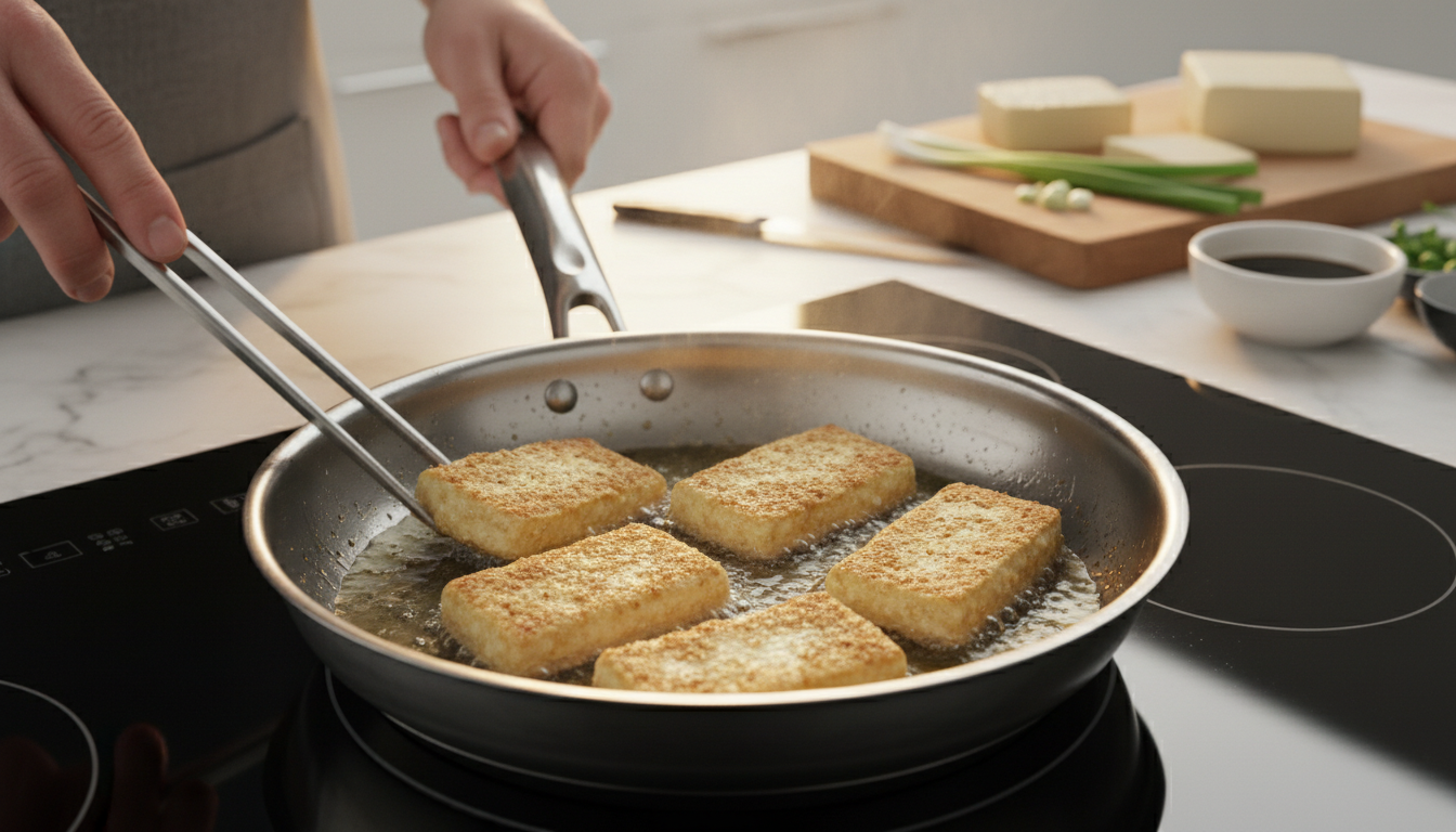 키친타월로 표면 수분을 꼼꼼히 제거한 뒤, 팬을 충분히 예열하고 기름을 넉넉하게 두른 다음 두부를 올려야 합니다. 넣은 직후 바로 움직이지 말고 1~2분 후 자연스럽게 떨어질 때 뒤집는 것이 포인트입니다.