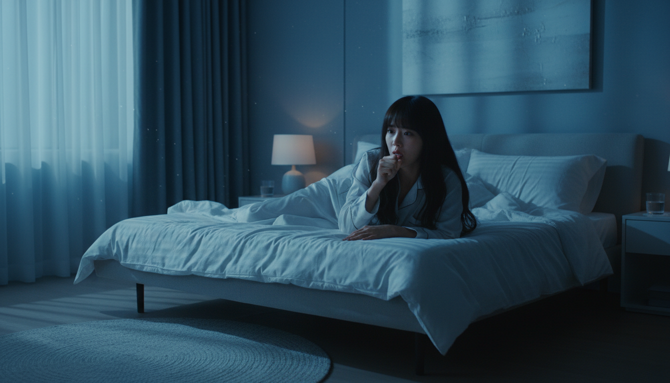 누운 자세에서는 콧물이나 분비물이 목 뒤로 흘러 기도를 자극하는 후비루 현상이 생기기 쉽습니다. 또한 실내 난방으로 공기가 건조해지고, 낮보다 면역 활동이 떨어지는 시간대라 기침이 더 잦아집니다. 취침 전 따뜻한 꿀물 한 잔과 상체를 약간 높여 자는 자세가 도움이 됩니다.