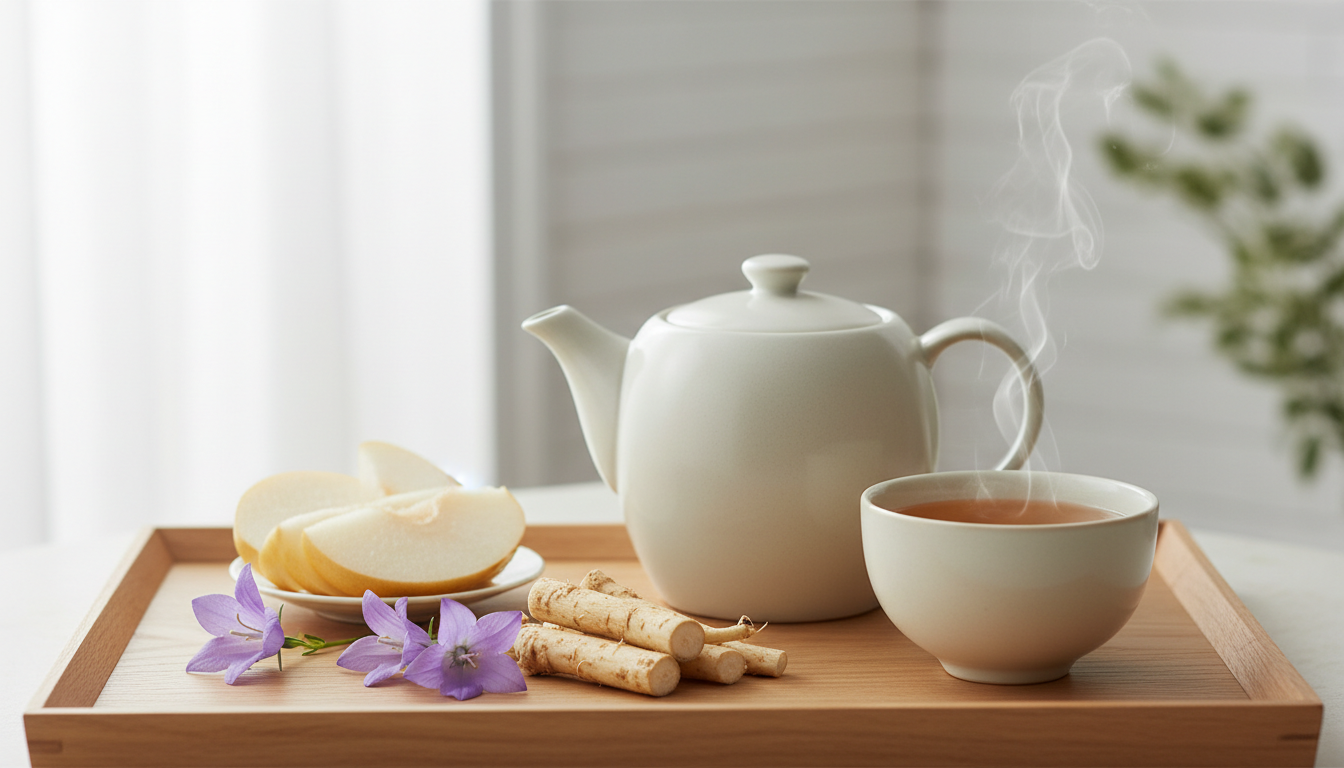 생강은 항염증 성분이 있어 인후 자극을 완화하고, 도라지에는 사포닌 성분이 기관지 점막을 보호하는 효과가 있습니다. 단, 꿀은 만 1세 미만 영아에게는 절대 사용하지 않아야 합니다.