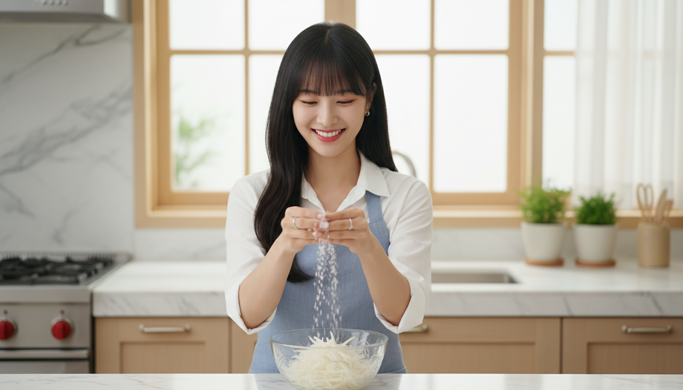 이제 본격적으로 불을 사용할 차례입니다. 앞서 결대로 써는 것을 강조했다면, 조리 과정에서의 핵심은 '절이기'와 '뜸 들이기'에 있습니다.